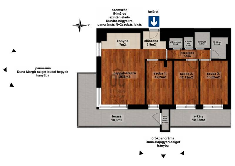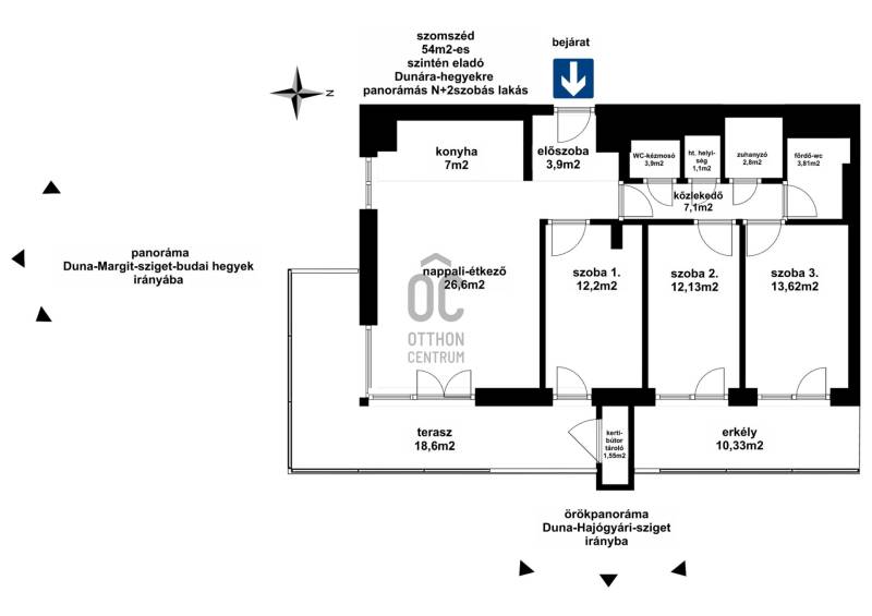 Ha a Waterfront Cityben keresi a megismételhetetlen ingatlant, itt megtalálta. Zárószinten, a 13. emeleten elhelyezkedő, 92 m2-es, nappali + 3 szobás, prémium otthon, amelyet még sosem laktak. Valóban újszerű, makulátlan állapot, az első lakója lehet. Minden helyiség közvetlen kijárattal kapcsolódik a panorámás teraszokhoz !AMIÉRT EZ TÉNYLEG EGYEDI A WATERFRONT CITYBEN– Zárószint, 13. emelet – maximális privát szféra és nyugalom– dunai panoráma – a víz látványa a mindennapok része– Teraszkapcsolat minden szobából – igazi penthouse életérzés– Még sosem lakták – az első tulajdonosként élvezheti a teljesen tiszta, új érzetet– Kivételes alaprajz – tágas, világos terek, tökéletes szeparáció– Nappali + 3 szoba – ideális családi méret– Két fürdőszoba, két WC, háztartási helyiség – kényelmes, praktikus mindennapokMŰSZAKI ÉS KOMFORT EXTRÁK– Gépesített, minimál konyha– Mennyezeti hűtés-fűtés– Elektromos alumínium redőnyök– SzúnyoghálókKÖRNYEZET ÉS ÉLETMÓD– Zöld, igényes lakóparki környezet – rendezett, modern, nyugodt atmoszféra– Jó közlekedés és infrastruktúra – a város kényelme, vízparti hangulattalPARKOLÁS– 2 egymás melletti beálló közvetlenül a liftnél az épület alatti mélygarázsban– Ár: 12 000 000 Ft / db – megvásárlása opcionálisHa dunai panorámát, zárószinti privát teraszélményt, és olyan luxus otthont keres, amelyet még sosem laktak, ezt látnia kell – hívjon most, és egyeztessünk időpontot!A konyhánál falszomszédos nettó 54m2-es N+2 hálós panorámás teraszos lakás szintén eladó, opcionálisan egy gk beállóval, és egy 4m2-es tárolóval! Mindkét lakás megvásárlása esetén egyedi árat adunk!