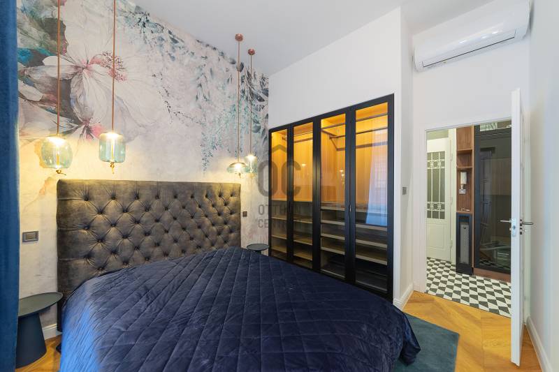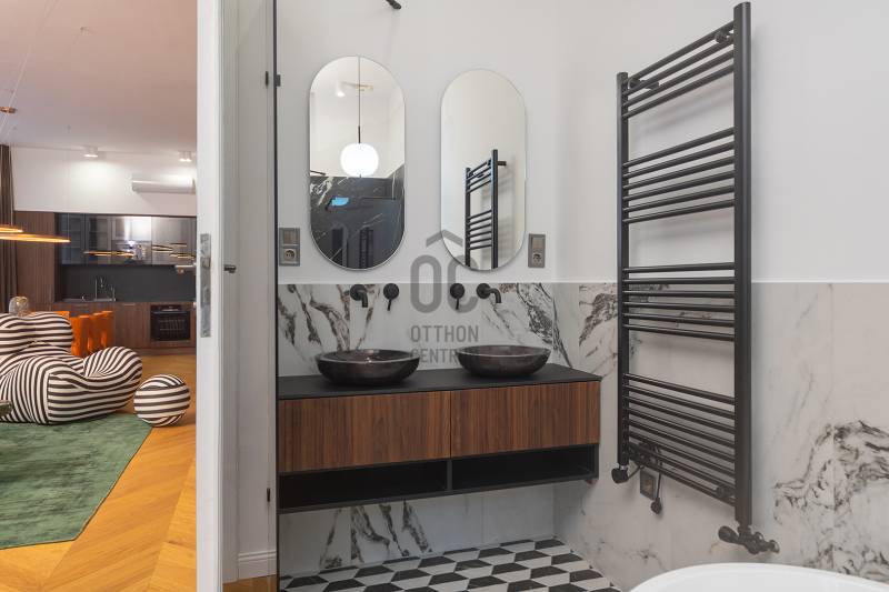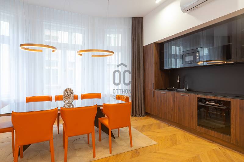 Az INT Interior Design Awards egy rangos, nemzetközi szintű szakmai elismerés, amely a kiemelkedő belsőépítészeti formatervezést, a térkompozíciók harmóniáját és az innovatív megoldásokat díjazza világszerte.A világhírű belsőépítészek díjazott munkái közé, egy magyar belsőépítész is keze munkája is bekerült az alábbi otthonnal.A lakás enteriőrje a modern luxust, a kozmopolita életérzést és az időtálló eleganciát ötvözi.AZ ÉPÜLETRŐLA lakás egy klasszikus, korabeli társasházban található, amely a 20. század közepén épült és ma is őrzi a belvárosi bérházakra jellemző karaktert. Az épület jellegzetes, nagypolgári arányokkal és méretarányokkal bír, így belső tereiben és külső megjelenésében egyaránt érezhető a történeti háttér és a városi elegancia.FŐBB JELLEMZŐK:- 93 m² alapterület, közel 50 m²-es nappali–konyha–étkező térrel- 2 külön nyíló hálószoba és 2 fürdőszoba- Több mint 3 méteres belmagasság- Kandalló, a nappali látványos központi eleme- Teljesen berendezett, azonnal költözhető / kiadható állapot- Belsőépítész által tervezett, egyedi design megoldások- Prémium burkolatok: chevron tölgyparketta, márványhatású nagylapok, exkluzív kerámiák- Egyedi, füstüveg frontos beépített szekrények az előszobában és hálószobákban- Díjnyertes bútorzat és gondosan válogatott designkiegészítők- Saroklakás, déli és keleti tájolással, kiváló természetes fényviszonyokkalA prémium minőségű, egyedi tervezésű bútorzat, designlámpák, burkolatok és kiegészítők összértéke megközelítőleg 24 millió forint, amely a vételár részét képezi. A berendezésben olyan ikonikus darabok is megtalálhatók, mint a Gaetano Pesce által tervezett Up 50 fotel, valamint neves gyártók termékei.A bútorzat és a teljes berendezés összértéke 24 MFT, ami a vételáron felül értendő és KÖTELEZŐEN MEGVÁSÁROLANDÓ.LOKÁCIÓ ÉS KÖZLEKEDÉSBudapest belvárosának szívében, az V. kerületben, díjnyertes belsőépítészeti koncepció alapján kialakított lakás. A környék a belvárosi életstílus minden előnyét kínálja:- prémium éttermek, kávézók, üzletek- kulturális intézmények, galériák- Duna-part, Váci utca és Deák tér néhány perc sétával elérhetőKözlekedés:- Ferenciek tere és Deák Ferenc tér 5–8 perc sétára- M1, M2, M3 metróvonalak gyors elérhetőséggel- Számos busz- és villamosjárat a közelben- Kiváló autós és kerékpáros megközelítésA lokáció ideális mind saját célra, mind befektetésként, rövid- vagy hosszútávú bérbeadásra.MŰSZAKI FELSZERELTSÉG- Teljes körű műszaki felújítás – minden gépészeti és elektromos rendszer, vezeték és csőhálózat új- Műszakilag is teljes mértékig felújított állapot, - Teljesen gépesített, egyedi tervezésű konyha prémium készülékekkel- Bordázott bútorfront, kompaktlemez munkapult, fekete kiegészítők- Magas minőségű klímaberendezés- Beépített riasztórendszer- Több ponton záródó biztonsági bejárati ajtó- Modern elektromos és gépészeti hálózat- Dupla mosdós, lebegő fürdőszobabútor- Füstüveg fallal határolt, nyitott fürdőtér a fő hálószobában- Egyedi világítási koncepció, hangulat- és funkcionális fényekkelA lakás minden részletében az ergonómia, a funkcionalitás és az esztétikum egysége érvényesül. A bútorok, beépített elemek és válaszfalak már a tervezési fázisban a maximális helykihasználás és komfort érdekében kerültek kialakításra.Felmerülő kérdéssel vagy megtekintéssel kapcsolatban, kérem egyeztessünk!Vevő ügyfeleink számára díjmentes, bankfüggetlen hiteltanácsadással biztosítjuk, hogy a számukra legkedvezőbb finanszírozási döntéseket hozhassák meg. Emellett opcionálisan igénybe vehető kiegészítő szolgáltatásaink – például ügyvédi közreműködés, energetikai tanúsítvány vagy villamos biztonsági felülvizsgálat – teljes körű szakmai támogatást nyújtanak az adásvétel minden egyes lépésénél.