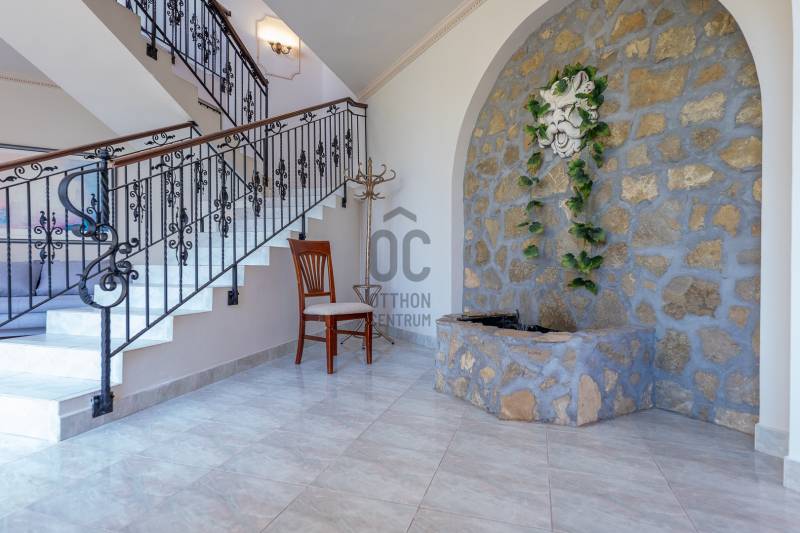 ÖRÖK PANORÁMÁS, ENERGIATAKARÉKOS LUXUS VILLA BIATORBÁGYON – 340 NM, KASTÉLYJELLEGŰ MEGJELENÉSSELBudapesttől mindössze 14 km-re, Biatorbágy egyik csendes, elegáns mellékutcájában kínálunk megvételre egy különleges, háromszintes, 400 nm-es villaépületet, amely örök panorámával, kiemelkedően alacsony rezsiköltséggel és sokoldalú hasznosítási lehetőségekkel rendelkezik.FENNTARTHATÓ LUXUS – AKÁR NULLA FORINTOS FŰTÉSSZÁMLAA villa energiahatékony működését egy 18 kW teljesítményű, 22 optimalizálóval felszerelt napelemrendszer, valamint svéd Energy Save hőszivattyúk (13 kW és 11 kW) biztosítják.Ennek köszönhetően az ingatlan rezsiköltsége extrém alacsony, az áramköltség gyakorlatilag nullára csökkenthető.További műszaki előnyök:20 cm üveggyapot tetőszigetelésBramac tetőcserépKorszerű rézvezetékelés (teljes felújítás: 2006)5 db klíma (ebből 3 LG hűtő-fűtő klíma a felső szinten)automata Hunter öntözőrendszerszakszerűen kiépített szikkasztórendszer (2018)belső terek friss festése (2024)RUGALMAS TÉRKIALAKÍTÁS – MAGÁNCÉLRA ÉS VÁLLALKOZÁSRA IS IDEÁLISAz ingatlan kiválóan alkalmas:exkluzív magánrezidenciánaknagycsaládosoknak, akár két külön lakrésszelrendelőnek, bentlakásos intézménynekcégközpontnak vagy irodai funkcióraA háromszintes épülethez 900 nm-es, örökzöldekkel parkosított kert tartozik.A főbejárat a középső szintre vezet, míg az alsó szint külön bejáratról is megközelíthető, ami tovább növeli a hasznosíthatóságot.HELYISÉGKIOSZTÁS3 nappali6 külön bejáratú szoba2 teljesen felszerelt, gépesített konyha3 fürdőszoba4 WC (bidé, piszoár)dolgozószobaháztartási helyiségkazánház70 nm-es márvány teraszgarázs + kültéri parkolókPRÉMIUM EXTRÁK ÉS ELEGÁNS RÉSZLETEKkovácsoltvas korlátokstukkók, boltívekhidromasszázs sarokkád, zuhanykabinantik tükrökriasztórendszerszökőkútautomata, fűthető garázszárt beálló 2–3 autó számáratérkövezett udvari parkoló további 3 autónakKERT ÉS ÉLETTÉR – PANORÁMA A BIAI-TÓRAA 70 nm-es terasz és a dúsan zöldellő, intim kert tökéletes helyszínt biztosít pihenéshez, családi és baráti összejövetelekhez.A Biai-tó lenyűgöző látványa a mindennapok része, miközben a környezet maximális nyugalmat és privát életteret nyújt.LOKÁCIÓ – NYUGALOM ÉS KIVÁLÓ INFRASTRUKTÚRABudapest gyorsan elérhető az M1/M7 autópályákonLovaglási lehetőségek Sóskúton és Etyekenwellness és úszási lehetőség Herceghalmonegész éves borkóstolási programok Etyeken