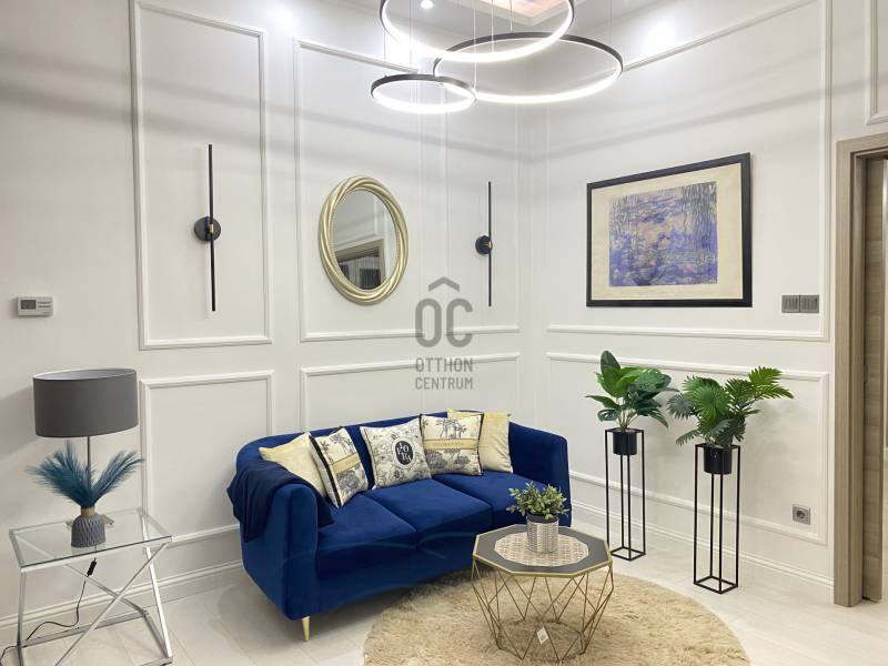 Budapest történelmi belvárosának egyik legnemesebb utcájában kínálom eladásra ezt a kifinomult ízléssel megálmodott, amerikai konyhás nappalival rendelkező, 3 szobás lakást. A patinás, klasszikus épület frissen felújított homlokzattal és tetővel rendelkezik, így a ház egyszerre sugároz régi eleganciát és modern megbízhatóságot.A nappali és étkező egybenyitott tere a lakás szíve: nagy ablakai beengedik a természetes fényt, a letisztult falburkolatok és a gondosan megválasztott dekoráció pedig harmonikus, magas presztízsű hangulatot teremtenek. A modern, kör alakú designlámpák, a mély kék kanapé és a geometrikus dohányzóasztal együttese olyan miliőt alkot, amely ritkán található meg a belvárosi ingatlanok között.A tágas hálószoba igazi nyugalomsziget: a prémium textíliák és a meleg tónusú fal háttér elegáns boutique hotel hangulatot idéznek. A gondosan összeválogatott dekorációk, a lebegő LED körlámpák és az egyedi elrendezés mind azt sugallják, hogy itt minden részletre figyeltek. A modern kényelmet cirkófűtés digitális termosztáttal, hűtő-fűtő klíma, redőnyök, valamint teljes gépesítés biztosítja. A lakáshoz tartozik egy 10 m²-es, ablakos tároló is, biztonsági ráccsal.A lakás minden részlete a valóságot tükrözi: a fotókon látható berendezés és dekoráció nem látványterv, hanem a tényleges állapotot mutatja. A BÚTORZAT A VÉTELÁR RÉSZÉT KÉPEZI, így az új tulajdonosnak nincs más dolga, mint birtokba venni ezt a kifinomult, magas minőségben kialakított otthont. Az átalakítás nemrég fejeződött be, ezért a lakás egy teljesen új, gondosan megtervezett enteriőrrel várja első lakóját – azonnal költözhető állapotban.A csendes mellékutcára néző lakás tökéletes választás azok számára, akik a belváros pezsgését szeretnék élvezni anélkül, hogy lemondanának a nyugalomról. A lakás néhány perc sétára található a Duna-parttól. A környék verhetetlen hiszen tele van hangulatos éttermekkel, kávézókkal, galériákkal és kulturális helyszínekkel és egyben kiváló közlekedéssel rendelkezik (busz, metro, villamos sétatávolságra). A belvárosi programok sokasága mind könnyedén elérhető.Akár egy esti séta a rakparton, akár borozás a barátokkal, egy színházi előadás vagy egy különleges vacsora – itt minden adott ahhoz, hogy a mindennapok is élménnyé váljanak.A kiváló elhelyezkedéshez nem fér kétség, a kényelmes, biztonságos környezet itt garantált!Ez az ingatlan nem csupán egy lakás, hanem egy gondosan megkomponált életstílus — prémium kivitelezéssel, luxus berendezéssel, azonnal költözhető állapotban, Budapest egyik legkeresettebb pontján. Bérbeadásra is kiváló lehetőséget kínál, megelőzően rövidtávú bérbeadás alkalmával folyamatos teltházzal üzemelt, filmes stábok is előszeretettel keresték.Aki különleges, magas színvonalú otthont keres a belváros szívében, annak ez a lakás valódi ritkaság.Keressen bizalommal és tekintse meg ezt az egyedi ingatlant!