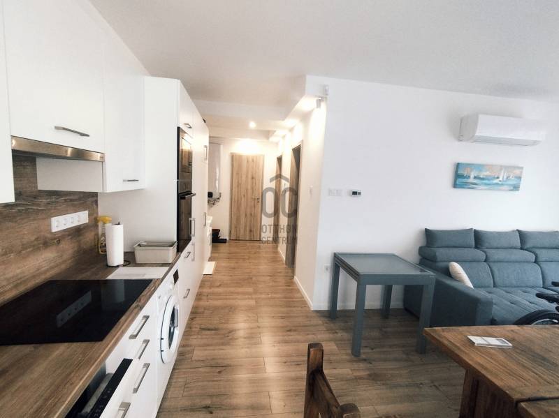 Földszinti lakás.Projekt bemutatásaSiófok -Sóstó a város legkeletibb része, mára egybeépült a szomszédos Balatonvilágossal. Nevét a parttól nem messze elhelyezkedő, Sóstó nevű állóvízről kapta. Partszakasza a lassan mélyülő, homokos talajú szabadstrandok miatt kedvelt. Külön autópálya lehajtóval rendelkezik. Partmenti szakasza üdülőövezeti besorolású, a vasúton túli részek lakóövezeti besorolásúak. Új építésű környezetben a Balatontól 10 perc sétatávolságban ízléses, medencés, automatizált, padlófűtéses 7 lakásos társasház. Nemcsak nyaralónak, de állandó lakhatásra is alkalmasak ezek az ingatlanok. A Balaton közelsége nagy vonzerő, a „home office” típusú munkavállalás lehetővé teszi jól szituált fiatalok letelepedését is, akik igényesek környezetükre. Az autópálya közelsége is elősegíti mindezt. A társasház legfelső szintje penthouse kialakítású. Külföldi befektetők is érdeklődnek, vásárolnak. Maguk az építési vállalkozók is letelepedtek ezen a környéken. Dinamikusan fejlődő városrész, tisztán kereslet-kínálati alapon. A legtöbb lakás a tervezőasztalról kerül értékesítésre, az átadás előtt biztosan gazdára talál.A társasház új építésű lakóházak között, erdős-parkos környezetben helyezkedik el. A közvetlen környéken alternatív gyógyászati központ és a sóstói nagystrand helyezkedik el, éttermekkel, sportolási lehetőséggel, kirándulóhelyekkel, gyógyfürdővel. A belváros 7,4 km, ahol télen is minden közintézmény, kereskedelmi létesítmény, szolgáltatás és kulturális lehetőség adott. Az ingatlan 2025-ben épült, igényes kivitelezéssel, szabadon álló beépítéssel. A társasház kiváló állapotú, új építésű, minden részében rendkívül igényesen megtervezett, bizonyos elemeiben luxusigényeket is kielégítő ingatlan, gépkocsibeállóval és a társasház közös használatában rendelkezésre álló medencével. A tervező a modern minimalizmust és a természetes elemeket kombinálta.