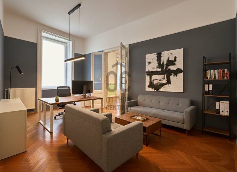 A belváros egyik legkeresettebb részén, a körúttól mindössze egy utcányira kínálunk megvételre egy 114 m² alapterületű, kiváló adottságokkal rendelkező polgári ingatlant, amely ideális választás irodai, egészségügyi vagy egyéb üzleti hasznosításra, de adottságainak köszönhetően galéria vagy exkluzív bemutatóterem kialakítására is alkalmas.A nagyvonalú, jól szeparálható helyiségek és az átalakítható alaprajz lehetővé teszik több iroda vagy rendelő kialakítását, illetve – megfelelő tervezéssel – akár két vagy három önálló egység létrehozását is. A tágas, reprezentatív terek és a jelentős belmagasság különösen alkalmassá teszik az ingatlant ügyfélforgalmat fogadó tevékenységre, bemutatótér, showroom vagy művészeti galéria működtetésére.Az ingatlan mintegy 20 évvel ezelőtt teljes körű műszaki felújításon esett át (villamoshálózat, víz- és csatornarendszer cseréje), néhány éve pedig korszerű gázkazán került beépítésre. Jelenlegi állapota jó, azonnal használatba vehető, ugyanakkor kiváló alapot biztosít egy modern, üzleti koncepció szerinti átalakításhoz.A nagy ablakfelületeknek köszönhetően a helyiségek kifejezetten világosak, ami irodai, egészségügyi vagy kiállítótéri funkció esetén egyaránt kiemelt jelentőségű. A természetes fény és a polgári karakter presztízsértéket képvisel, amely erősíti az ügyfélélményt és a márka megjelenését.A társasház rendezett, folyamatosan karbantartott, a közelmúltban megtörtént a fő víz- és csatornahálózat, valamint a fő gázvezeték cseréje is. Az ingatlanhoz tartozik egy kb. 7 m²-es, zárható saját tároló a száraz pincehelyiségben, levegőcserélő és páramentesítő rendszerrel – a belvárosban ritka és értéknövelő adottság.Az elhelyezkedés üzleti szempontból kiemelkedő: a körút közelsége kiváló megközelíthetőséget és frekventált környezetet biztosít. A Nyugati pályaudvar néhány perc sétára, az Oktogon 8–10 perc gyalogtávolságra található, az 1-es metró megállója szintén rövid sétával elérhető. A környék kiváló infrastruktúrával és tömegközlekedési kapcsolatokkal rendelkezik.Az ingatlan ideális választás ügyvédi iroda, könyvelőiroda, magánorvosi rendelő, egészségügyi vagy esztétikai központ, tanácsadó cég, oktatási központ, galéria, showroom vagy több egységből álló befektetési konstrukció kialakítására.(A terek jobb átláthatósága érdekében a hirdetési képeken a bútorzat eltávolításra került, továbbá néhány helyiség inspirációs jellegű látványtervként szerepel.)