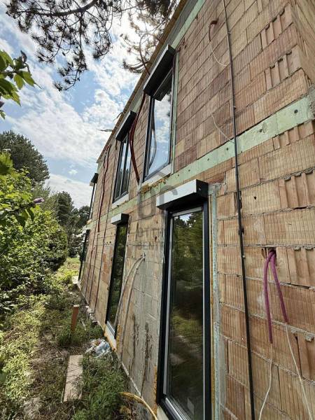 MINDJÁRT KÉSZ!!!! Új építésű, magas minőségű ikerház 200 méterre a Balatontól! Vegye meg akár az egész épületet!Siófok a Balaton déli partjának egyik LEGKEDVELTEBB ÉS LEGKERESETTEBB települése. Budapestről autópályán gyorsan megközelíthető.Egy impozáns, mutatós épületet álmodtak meg. A látványtervek önmagukért beszélnek. A vételár a kulcsrakész állapotra értendő, mely a vevő igényei szerint kerül kialakításra.Épület paraméterek:290m2 telek részközel 200m2 kizárólagos használatú kert107 m² + 25 m² terasz + 21 m² erkélyAmerikai konyha + nappali + 4 hálószoba + 3 fürdőszobaGépkocsibeálló2-es lakás: 185,9 Millió ft348m2 telekrészItt a terasz 20m2 és az erkély 25m2 (míg az 1-es lakásnál fordítva van)Legfontosabb műszaki paraméterek:- Falazat 25 cm vastag Leiertherm blokktéglából, a két lakás köztes fala külön falazattal- Homlokzat: 15cm vastag grafitos hőszigeteléssel, kőhatású burkolólappal- Nyílászárók (ablakok, teraszajtók)bukó-nyíló, teraszajtó emelő-toló funkcióval van ellátva - hőszigetelt háromrétegű üvegezésűek. A nyílászárók rejtett tokos, elektromos, alumíniumból készült redőnyökkel lesznek ellátva.- Kültéri burkolatok: a teraszok, erkélyek fagyálló padlólapokkal- Belső burkolatok: laminált-, kerámiaburkolatokkal készültek a belső terek.- Fűtés/hűtés: hőszivattyús rendszer padlófűtéssel kombinálva, hűtés klímávalEzüstpart, Balatonszéplak adottságai:- A Sió csatornától nyugatra fekvő szakasz Ezüstpart néven ismert, keletre pedig az Aranypart található.- A szállodák nagy része és a város szórakoztató központja, a Petőfi sétány az Aranyparton található.- Az Ezüstpartot inkább egy-két szintes nyaralók és panziók uralják, ott végig szabadstrand van a partvonal mentén.- Rendezett, tiszta és rendkívül zöld strandjai miatt nagyon népszerű hely.- A Balaton keleti medencéjének déli partján található a Siófok Ezüstpart Vitorlás Egyesület kikötője. A kis vitorláskikötő saját használatban van, de vendégeket is fogad.Ami vissza van:Külső hőszigetelés és betonhatású kőporcelán a homlokzatraHideg/melegburkolatokFestésVillamos szerelvényezésGépész szerelvényezés+szaniterekKülső tereprendezés, kerítésBeltéri ajtókCSOK és OtthonStart Programra is akár!