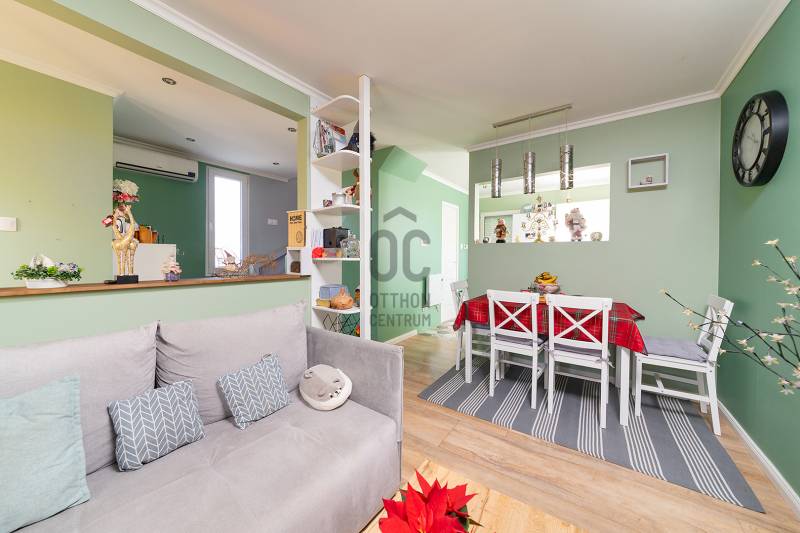 Kettő az egyben Eladásra kinálok egy, kétszintes 70 nm-es , modern családi házat, Szigethalom csendes részén – nagy telekkel, kiváló közlekedéssel,illetve eg egy, egy szintes 40 nm-es házat,ami ugy szintén ,lekeritve a telken található.A két ingatlan közel 800 nm-es telken,helyezkedik el.Az egyik ház jelemzője:Alsó szint:- tágas, világos nappali–konyha–étkező- fürdőszoba WC-vel- háztartási helyiségFelső szint:- 2 hálószoba- külön gardróbszobaA másik ház : Egyszintes,-két külön nyiló hálószoba ,illetve fürdőszoba wc található., és egy szép konyha.Műszaki jellemzők:- padlófűtés és elektromos panelek- klímaberendezés- az épület szigeteltKert és környezet:A nagy udvar kiválóan alkalmas sütésre, pihenésre, szabadidős tevékenységekre, kertészkedésre vagy akár játszótér kialakítására is.Elhelyezkedés:- HÉV- és buszmegálló pár percre- bevásárlási lehetőségek 5 percen belül- nyugodt, családias környezetEz az ingatlan ideális választás lehet pároknak, kisebb családoknak vagy mindazoknak, akik kertkapcsolatos, jól megközelíthető otthont keresnek.Készpénzes vevőket várunkÉrdeklődjön most, és tekintse meg személyesen!