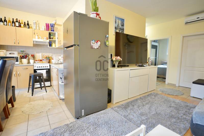 Budapest XVIII. kerületében, Újpéteritelepen, a Nemes utcában rendezett társasházban kínálunk megvételre egy 57 m²-es, 3 külön nyíló szobás, utcára és belső udvarra is néző, világos és jó elosztású első emeleti lakást. Melyhez tartozik egy felszíni, zárt, udvari fedett autó beálló amely megvásárlása kötelező.A ház 2003-ban épült, tégla szerkezetű, jó állapotú épület, mindössze 18 lakással. A társasház földszintjén üzletek találhatók – többek között pékség, virágbolt, dohánybolt és egy Otthon Centrum iroda is –, így minden fontos szolgáltatás karnyújtásnyira elérhető.A első emeleten található lakás tehermentes, hitelezhető.Az ingatlanban jelenleg megbízható bérlő lakik több éve, aki már fixen kiköltözik május 30, kiváló lehetőség ez befektetés szempontjából. A házban több 2-3 szobás lakás is van még eladó.A lakás helyiségei:-nappali-étkező: 18,92 m²-konyha- étkező 8,77 m²-külön nyíló hálószoba: 10,5 m² -külön nyíló hálószoba: 10 ,5m²-előszoba: 7,95 m²-fürdőszoba-WC: 4,17 m²A fűtésről 2017-ben cserélt, kondenzációs gázcirkó gondoskodik, amelynek aktuális nagy karbantartása már megtörtént. A lakásban klíma is található, valamint műanyag nyílászárók kerültek beépítésre.A villany- és gázórák feltöltőkártyás rendszerűek, a közös költség 18.810 Ft/hó.A lakáshoz zárható közös tároló is tartozik, a lépcsőház földszintjénParkolás az utcán ingyenes. De a lakáshoz kötelezően megvásárlandó egy felszíni fedett beálló melyek ára: 3 millió forint. A környék csendes, rendezett és biztonságos.A közlekedés kiváló: néhány perc sétával elérhető több buszjárat, amelyekkel gyorsan megközelíthető a Kőbánya-Kispest metróvégállomás és a belváros is. Autóval az Üllői út közelsége révén a reptér és az M0-ás is könnyen elérhető.Ha egy kiváló elhelyezkedésű, jól karbantartott, azonnal költözhető lakást keres a XVIII. kerületben, ez a lehetőség Önnek szól.Amennyiben bármilyen kérdés felmerült Önben vagy szeretné megtekinteni az ingatlant keressen bizalommal. Továbbá igény esetén a vásárlás teljes folyamata során magas szintű, szakmailag releváns hitelügyintézői támogatást biztosítunk, a finanszírozási lehetőségek áttekintésétől egészen a sikeres folyósításig.Ez az ingatlan a \"Felező csomag\" megbízási portfólióhoz tartozik. Részletek az Otthon Centrum weboldalán.