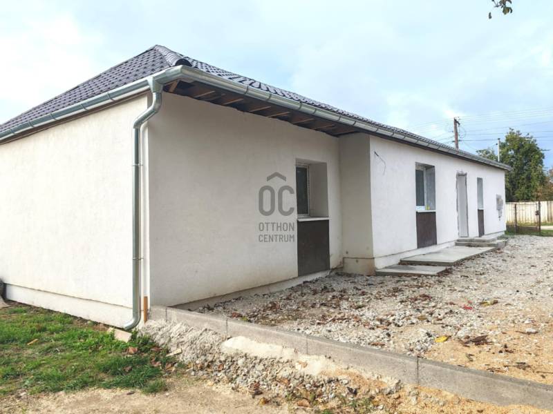Ádándon, a falu egyik csendes, nyugodt, kisforgalmú utcájában, a természet közelségében kínálunk megvételre egy felújítás alatt álló, 96 m²-es családi házat, amely egy 1062 m²-es, szépen alakítható telken helyezkedik el. Az ingatlan belterületen található, mégis igazán békés, kertvárosias hangulatot áraszt, ideális választás mindazoknak, akik nyugalmat és tágas életteret keresnek.A ház elosztása praktikus és otthonos: három külön nyíló szoba, valamint egy világos, amerikai konyhás nappali biztosítja a kényelmet. Az épület tégla falazatú (egy válaszfal tömés), a tetőszerkezet teljesen megújult, cserepeslemez fedéssel. A homlokzati szigetelés 10 cm, a lábazaté 5 cm, és a padlófűtés is elkészült. A kazán beszerelése és a belső munkálatok befejezése az új tulajdonos feladata, így lehetőség nyílik arra, hogy mindenki a saját ízlésére formálja a házat.A fűtés kiegészítésére 4 darab NOBO elektromos fűtőpanel is telepítésre kerül, az ingatlan pedig H tarifás áramellátással rendelkezik, ami energiahatékony, alacsony rezsijű működést tesz lehetővé.A tágas, 1062 m²-es telek számos lehetőséget kínál: bőven jut hely kertnek, pihenőterasz kialakításának, vagy akár kisebb gazdálkodásra, veteményesre is. A falu központja, az iskola, az óvoda és a bevásárlási lehetőségek néhány perces sétával elérhetők, így a mindennapi élet is kényelmesen megoldható.Ez a ház tökéletes választás lehet fiatal pároknak első otthonként, családoknak, vagy nyugodt környezetre vágyó idősebbeknek is. Egy kis odafigyeléssel és befejezéssel igazán meleg, szerethető otthon varázsolható belőle.Most akciós áron eladó, így valóban remek lehetőség azok számára, akik álmaik otthonát keresik egy barátságos, fejlődő településen.A vásárláshoz 3%-os, fix kamatozású lakáshitel is elérhető, amelynek ügyintézésében díjmentesen segítünk.Ne halogassa a döntést – hívjon bizalommal, és tekintse meg személyesen ezt a sok lehetőséget rejtő, hangulatos családi házat Ádándon!