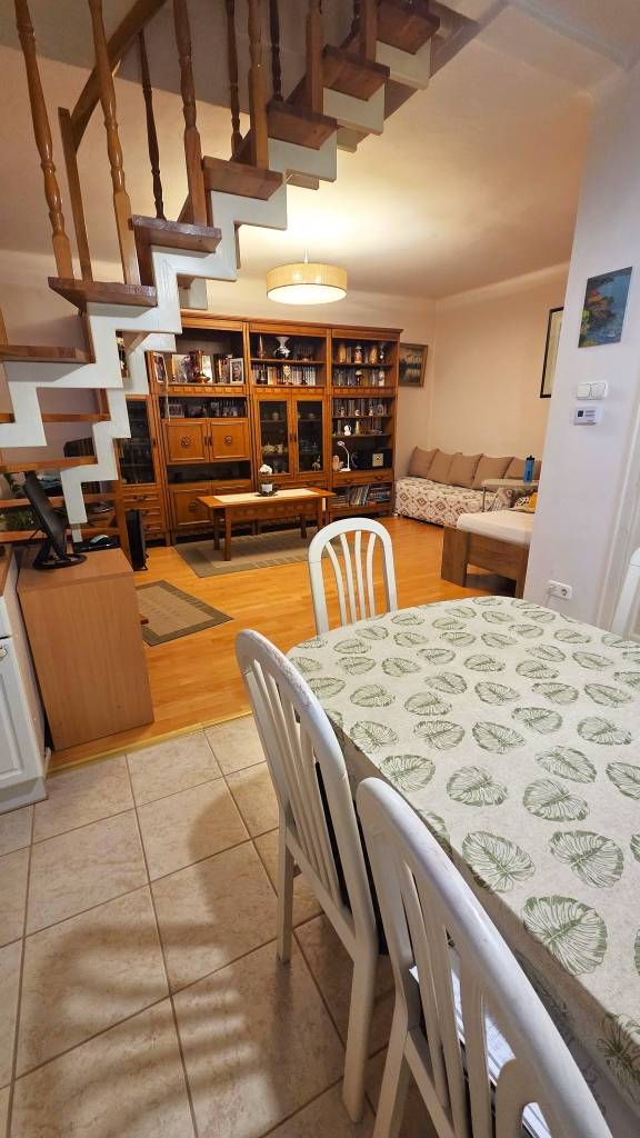 Kuriózum BUDAÖRSÖN!A lekeresettebb Magyarországi lokációként ismert település a fővárostól mindössze 5-10 perces autó távolságra helyezkedik el!Mivel a hirdetésben kínált ingatlannal közvetlen szomszédos (130 m2-es, belső kétszintes) lakás is eladó, így a hirdetésben szereplő 72 m2-es ingatlannal együtt közel 200 m2 lakófelület alakítható ki. Melyhez az összevonást követően kapcsolódhat további, összesen 150 m2 telekrész. A település főbb jellemzői:1. közlekedés:- Budapesttől 5-10 perc távolság, - számos elérési útvonal (M7, M1 autópálya, régi Balatoni út, a főváros XI. kerületéből közvetlen, Budaörsi bekötő úton, a szomszédos településről Törökbálintról és a Budai hegyeken keresztül Budakeszi irányából)2. fekvés:a Budaörsi medencét körbeöleli a Budai, a Frank és a Csíki hegység, valamint a főváros XI. kerületétől nyugatra eső Tétényi fennsík,3. Infrastruktúra:- hyper és szupermarketek, barkács és sport áruházak, számtalan kisebb-nagyobb szolgáltató, illetve szabadidős tevékenység, stb.) - Budapestre közvetlen, illetve a környező településekre távolsági buszjáratok, - közintézmények, iskolák, óvodák, bölcsődék, - kulturális és sport létesítmények.Az ingatlan műszaki, gépészeti jellemzők:- B30-as falazó blokktégla + 10 cm dryvitos homlokzati szigetelés, - beton födém (10cm-es hőszigetelő gyapot),- Radiant típusú kombi-cirkó kazán,- 3,6 kw-os inverteres (hűtő-fő klíma)- 2 rétegű műanyag nyílászárók, - padlófűtés (konyha és fürdő alatti részen)Figyelem: a társas házi lakók közös beleegyezéssel 2026.02. hóban elindították a használati megosztást. A határozatot követően a lakásokhoz tartozó kizárólagos kertrész jelentősen emeli az ingatlan értékét.