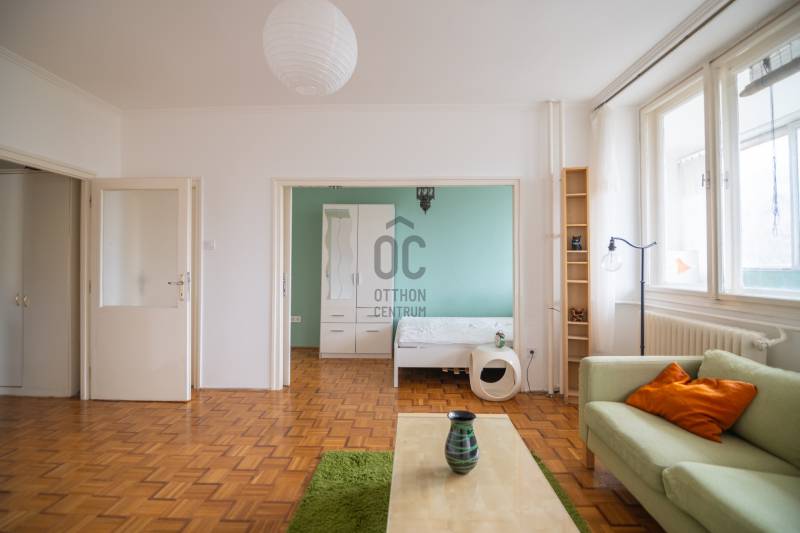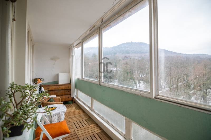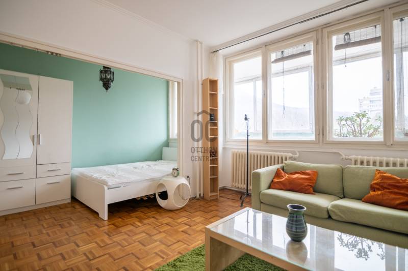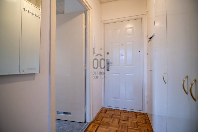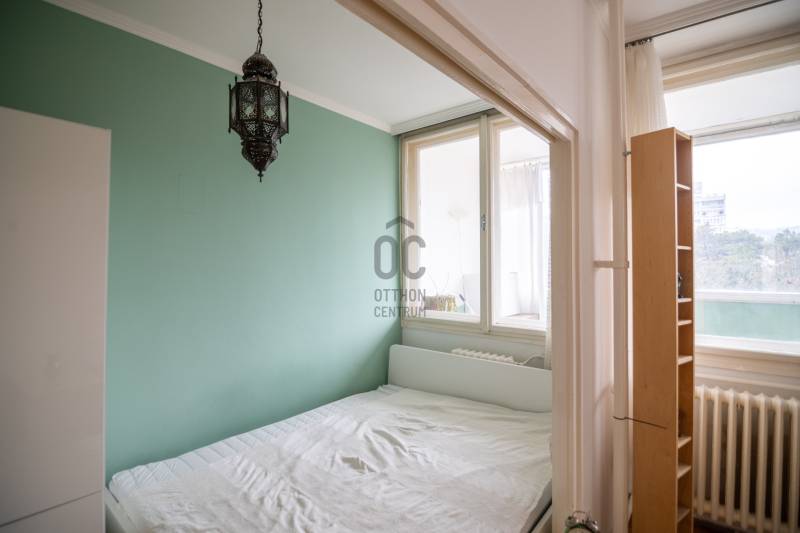 A II. kerület egyik legkedveltebb, zöldövezeti részén, Kurucles és Hárshegy határán, egy 1969-ben épült, csúsztatott zsalus társasház 6. emeletén kínáljuk megvételre ezt a nyugati tájolású, panorámás lakást.Az ingatlan nettó 45 m² (bruttó 49 m²) alapterületű, jelenleg 1 szobás + hálófülkés, elosztása praktikus, ugyanakkor átalakítási lehetőségeket is rejt: akár két szobássá is alakítható. A 9 m²-es loggia további értéket képvisel, melynek fele beépíthető, növelve a hasznos alapterületet.A lakás világos, 270 cm-es belmagassággal rendelkezik, az ablakos konyha tovább növeli a komfortérzetet. A nyílászárók eredetiek, de jó állapotúak, megfelelő hőszigeteléssel.2019-ben kisebb felújítások történtek, többek között:•az elektromos hálózat teljes körű felújítása•a konyha megújítása•nyílászárók mázolásaA fűtés jelenleg házközponti, a közgyűlésen hamarosan szavazásra kerül az egyedi mérésre való átállás lehetősége.A közös költség 28.500 Ft, amely tartalmazza a víz-, csatorna- és fűtésdíjat is – így a rezsi kifejezetten kedvező.A társasház anyagi helyzete stabil, folyamatosan karbantartott, emeletként mindössze két lakás található, a közlekedést két lift segíti. A lakókörnyezet kultúrált, családias, a szomszédság rendezett.További előnyök:•közös tároló a lakók részére•kertben kialakított parkoló 24 autó számára, tulajdonosi egyeztetéssel használható•per- és tehermentes ingatlan•alacsony fenntartási költségek•befektetésnek is kiváló, könnyen kiadhatóA lakásból lenyűgöző panoráma nyílik az Erzsébet-kilátóra és a Hárshegyre.A közlekedés kiváló: a buszmegálló pár lépésre található (22, 22A, 222, valamint helyközi járatok Páty és Telki irányába), 5 percenként közlekedő buszokkal, a Széll Kálmán tér 10–15 perc alatt elérhető.A környék ideális természetkedvelőknek és aktív életmódot folytatóknak: Normafa, Hárshegy kilátói, Budakeszi Vadaspark, Gyermekvasút, valamint a Külker Sportpark mind könnyen elérhetők.A közelben iskolák, közértek, illetve a Budagyöngye Bevásárlóközpont található. Autóval gyorsan megközelíthető a Budakeszi Stop Shop, ALDI, LIDL, Fény utcai piac és a Mammut Bevásárlóközpont.Remek választás első lakásnak, fiatal pároknak vagy hosszú távú befektetésnek egyaránt.Amennyiben felkeltette érdeklődését ez a különleges adottságokkal rendelkező ingatlan, várom megkeresését , szívesen állok rendelkezésére további információval vagy személyes megtekintés egyeztetésével.