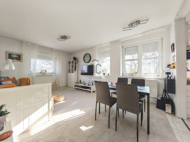Belváros közelében, rendezett, négyszintes társasház harmadik emeletén kínálunk megvételre egy 63 m²-es, amerikai konyhás nappali + 2 hálószobás, délkeleti tájolású, egyedi cirkófűtéses, kedvező fenntartású téglalakást.Az 1996-ban épült, folyamatosan karbantartott épület tégla szerkezetű, műanyag, hőszigetelt üvegezésű nyílászárókkal készült.A lakások fűtését radiátoros, egyedi cirkórendszer biztosítja.A közös költség 19.000 Ft/hó.A társasház saját, zárt, parkosított belső udvarral rendelkezik, amely kellemes, nyugodt környezetet biztosít a lakók számára.Helyiségek: • tágas előszoba • amerikai konyhás nappali • 2 külön nyíló szoba • fürdőszoba • külön mellékhelyiség kézmosóval • kamra (a konyhából nyílik)Műszaki jellemzők, felújítások: • 2015-ben beépített, korszerű Vaillant gázkazán • 2024-ben cserélt radiátorok • 1x25 A villamos hálózat • klímaberendezés az előszobában • új, biztonsági bejárati ajtó • redőnnyel felszerelt ablakokA burkolatok igényesek és praktikusak: az előszobában, konyha-étkezőben, fürdőszobában, mellékhelyiségben és a kamrában járólap, míg a nappaliban és a hálószobákban fa szalagparketta található.KörnyezetA társasház csendes, nyugodt környezetben helyezkedik el, a közelben bevásárlási lehetőség, iskola és óvoda is megtalálható.MegközelítésAutóval és tömegközlekedéssel egyaránt kiválóan elérhető, a belváros mindössze 5 perc sétára található.#szekesfehervaringatlan #teglalakas #belvaroskozeli #amerikainappali #azonnalkoltozheto