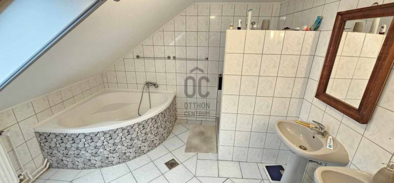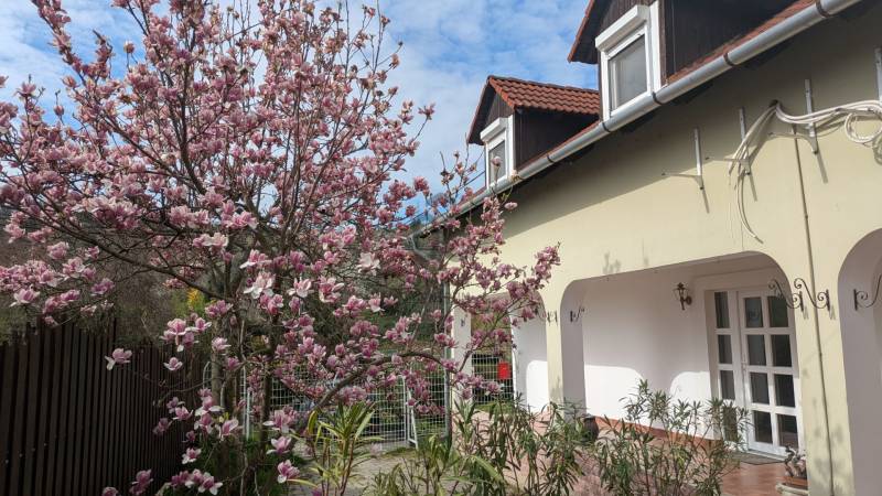 Eladásra kínálok a III. kerület csendes, nyugodt, kertvárosi részén, Békásmegyer Óaluban egy 1990.-ben épült 2 szintes jó állapotú családi házat, mely egy 272 nm-es saroktelken helyezkedik el.A kertben 2 autó számára beállási lehetőség, továbbá a zárt garázsban is akár 2 autó parkolása lehetséges.A ház 162 nm-es 7 szobával rendelkezik. NAGY CSALÁDOSOK SZÁMÁRA A LEGJOBB VÁLASZTÁS!TÁGAS TEREK JELLEMZIK!Nagy terasszal rendelkezik.A felújítás néhány évvel ezelőtt történt:- 15 cm-es szigetelés- áramvezetékek - új burkolatok mindenhol- márvány padló a földszinten- pár éves kondenzációs gázkazán (padlófűtés a földszinten, az emeleten radiátoros hőleadás)- napelem 2022-ben került fel (szaldó elszámolású, 8,88 kWh teljesítményű) Az áramfogyasztás a jelenlegi használat mellett a megtermelt mennyiséget nem éri el. A gázfogyasztás a kedvezményes mérték alatti. A földszinten padlófűtés, az emeleten radiátoros fűtés van.- 3 rétegű műanyag thermó ablakok, szúnyoghálóval, redőnnyel, az emeleten minőségi fa tetőtéri ablakokVastag falainak köszönhetően a legnagyobb nyári melegben is természetes hűvös hőmérsékletű a ház.ALACSONY REZSI!Rendezett tulajdoni viszonyok, tartozás nem terheli.A közelben minden megtalálható amire csak szüksége lehet.A közlekedés kiváló: 1 perc alatt elérhető a busz .A H5-HÉV 20 perc alatt Batthyány térnél van.Az ingatlan rugalmasan megtekinthető!Várom hívását!