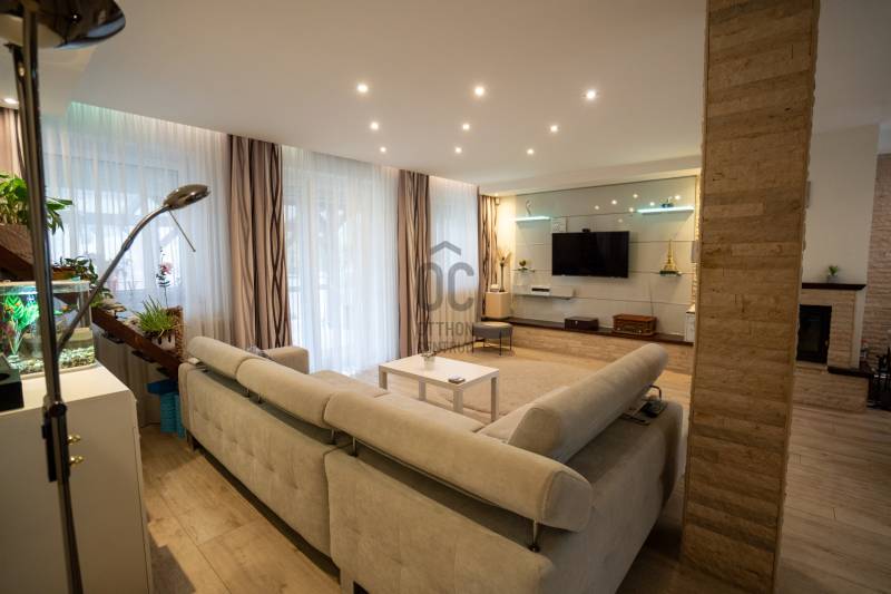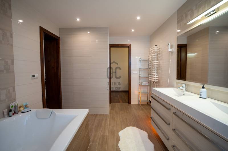 Ha egy igazán otthonos és prémium kivitelezésű ingatlant keres, ne menjen tovább, nézze meg ezt a modern, kényelmes otthont! Barátságos, kertvárosi hangulat, zöld környezet, biztonságos utcák, jó szomszédok jellemzik. További információk az ingatlanról:- alapterület: netto 208nm- telek méret: 390nm- zártsorú beépítés- vasbeton sávalap, szilikát falazat, tégla válaszfalak- vasbeton födém, szigetelt tető, zsindely fedés- szigetelt, színezett homlokzat- tágas, világos nappali étkezővel- 4 külön nyíló szoba (háló-, dolgozó-, vendégszoba)- szintenként elegáns, tágas fürdőszoba- festett falak- ízléses burkolatok- modern LED hangulatvilágítás- beépített, gépesített konyha- műanyag, hőszigetelt ablakok redőnnyel felszerelve- fa beltéri ajtók- modern, Hörmann bejárati ajtó- komoly gépészet, több fűtési alternatíva (kondenzációs gázkazán+vízteres kandalló+elektromos padlófűtés)- kiépített riasztó rendszer- egy állású, fűtött garázs- tároló+kazánház+kerti tároló az alsó szinten- hangulatos, fedett terasz (közvetlen kilépés a nappaliból)- gondozott, ápolt kertFelsorolni is nehéz, mit tud még ez az ingatlan?!A ház kiváló helyen található, a környék felkapott, közel a belváros, autóval is egyszerű megközelíteni. Ha biztonságos helyen színvonalas, elegáns ingatlant keresnek Tiszaújvárosban, jöjjön el, nézze meg ezt a családi otthont, garantáltan beleszeret!bank semleges hitelügyintézés, biztonságos jogi háttér, energetikai tanúsítvány, villamoshálózati felülvizsgálat