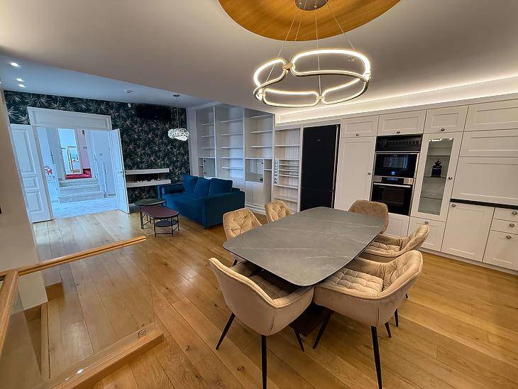 DUNAI PANORÁMÁS, ÖNÁLLÓ CSALÁDI HÁZ ELADÓ SZENTENDRE BELVÁROSÁBAN! KÖRNYÉK:Szentendre történelmi hangulatú belvárosában, a Fő tértől mindössze 10 perc sétatávolságra kínálunk megvételre egy kivételes adottságokkal rendelkező, dunai panorámás, önálló családi házat. A Duna korzó körülbelül 11 perc alatt, a HÉV-megálló mintegy 25 perc alatt érhető el gyalogosan, a közelben pedig számos kisbolt, gyógyszertár és egyéb szolgáltatás biztosítja a kényelmes mindennapokat.HÁZ JELLEMZŐI:-A 2012-ben, prémium minőségben épült ingatlan 220 m² lakóterülettel rendelkezik, amely egy 345 m²-es, intim hangulatú telken helyezkedik el.-A ház 38 cm-es Porotherm téglából épült, homlokzatán 15 cm vastag hőszigeteléssel, amely energiatakarékos és időtálló megoldást biztosít. A háromrétegű műanyag nyílászárók tovább növelik a komfortérzetet és a hőhatékonyságot.-Az elektromos hálózat 3×25 Amper kapacitású, a fűtésről gázkazán gondoskodik. Plusz mindegyik helyiségben inverteres klímák kerültek beszerelésre.-Az ingatlan modern műszaki tartalommal felszerelt: okosotthon-rendszer segíti a mindennapi kényelmet, az elektromos úszókapu és az egyállásos gépkocsibeálló pedig praktikus megoldást kínál. Az autóbeállóhoz elektromos autótöltő is tartozik.-A kertben kialakított szauna és a beépített medence igazi különlegességet jelentenek, amelyek tökéletes kikapcsolódást biztosítanak az év minden szakaszában. -Az ingatlan ideális választás mindazok számára, akik a belvárosi elhelyezkedést, a dunai panoráma nyújtotta egyedi látványt, valamint a modern, minőségi kivitelezést egyaránt fontosnak tartják.FINANSZÍROZÁS:Banki finanszírozással is megvásárolható, melyben irodánk ingyenes tanácsadással áll rendelkezésükre! VEVŐINK RÉSZÉRE A KÖZVETÍTÉS DÍJTALAN! A hirdetésben szereplő adatok tájékoztató jellegűek!