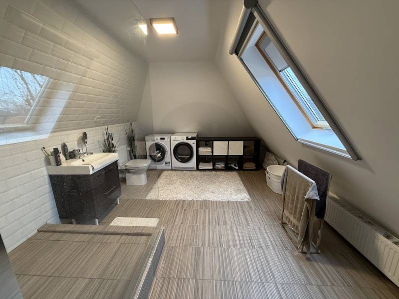Ha fontos Önnek a békés környezet, a kiváló műszaki állapot és az azonnal költözhető otthon, akkor ezt az ingatlant érdemes megnéznie!A 1995-ben épült, 698 m²-es telken elhelyezkedő, tégla falazatú, szigetelt családi ház cserép tetőfedéssel készült, állapota újszerű. Az elmúlt években több korszerűsítés is történt, így valóban csak költözni kell.Műszaki tartalom:• 2021-ben beszerelt Bosch kondenzációs kazán• Radiátoros hőleadás• 3 db hűtő-fűtő klíma• Modern, 3 rétegű nyílászárók• 3×25 Amper + H tarifa• Kiépített wifis kamerarendszer• Riasztó• Elektromos kapu és Hörmann garázskapuPraktikus, jól átgondolt elosztásFöldszint:• Előtér• Tágas nappali-étkező• Konyha kamrával• Fürdőszoba• Külön mellékhelyiség• 1 hálószobaA nappaliból közvetlen kijárat nyílik a 40 m²-es teraszra, amelyből 25 m² fedett. A pergola gondozásmentes anyagból készült, akárcsak az utcafronti kerítés – esztétikus és időtálló megoldás.Tetőtér:• 2 kényelmes méretű szoba• Gardrób helyiség• Fürdőszoba WC-velSzuterén szint:• Gépészeti helyiség• Tároló• Műhelynek vagy hobbihelyiségnek ideális tér• GarázsA ház ideális választás családok számára, akik nyugodt, biztonságos környezetben szeretnének élni, mégis elérhető távolságban a fővárostól. Zsámbék kiváló infrastruktúrával, óvodával, iskolával, bevásárlási lehetőségekkel rendelkezik.Ez az otthon egy valódi „kulcsrakész” lehetőség – jogilag rendezett, szerethető környezetben.Amennyiben egy igényes, jól karbantartott, azonnal költözhető családi házat keres Zsámbékon, várom megtisztelő megkeresését!