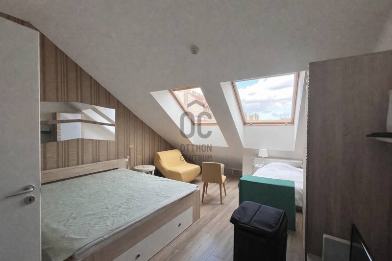 Az ingatlan központi elhelyezkedése, csendes fekvése és költözhető állapota miatt saját részre és befektetésre is kiváló lehetőség.Jelenleg is bérbe van adva, de rövid időn belül birtokba is vehető.Az épületről:- 2016–17-es építés, liftes, tégla építésű ház- 5 szintes, 100 albetéttel- rendezett ház, kulturált lakóközösség- szigetelt épület, alacsony rezsi költséggel rendelkező ingatlanA lakásról:- a tulajdon lapon bejegyzett méret: 36 nm- lemért bruttó alapterület: 49 nm- 190 cm alatti terület: 13 nm és az ebből számított, értékesített méret: 43 nm- (a tulajdon lapon ezért szerepel 36 nm)Fontos: a lakás érzésre és használatban is a 43 nm-nek megfelelő életteret ad!- 2 külön nyíló szoba, klímával felszerelt ingatlan- a teljes bútorzat és gépesítés a vételár része- konyha/étkező külön térben- zuhanyzós fürdőszoba (wc-vel egyben)- tetőtéri kialakítás- V. emelet – elszeparált elhelyezkedés- utcai nézetA konyha és a mellette lévő fal bontható → igény esetén egybenyitható, amerikai konyhás nappali kialakítható.Jelenlegi formájában jól szeparált, bérbeadásra ideális.Költségek:- közös költség: 510 Ft / nm- házközponti fűtés egyedi mérőkkel- fűtés költsége: kb. 3–4000 Ft / hó- külön vízóra- alacsony fenntartási költség-teremgarázshely bérelhető 35000 Ft / hóOpcionálisan teremgarázshely vásárolható, igény esetén ennek értéke megegyezés kérdése. Bérlésre van lehetőség, ennek díja 35000 ft / hó.Lokáció:A Corvin-negyed közvetlen közelében elhelyezkedő társasház, az M3-as metró, 4–6 villamos pár perc sétára található. Egyetemek, irodák, szolgáltatások sétatávolságra elérhetők.Ideális választás befektetésnek, első lakásnak, valamint azonnal kiadható, hozamtermelő ingatlan.Hitelre történő vásárlás esetén bankfüggetlen pénzügyi szakértőnk segítségével megtalálhatja az Ön számára legkedvezőbb megoldást.A tanácsadás ingyenes, keressen bizalommal!
