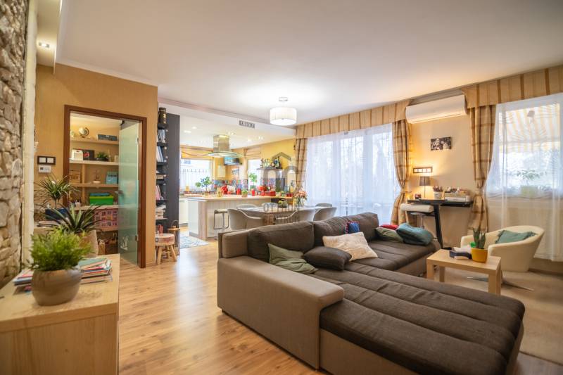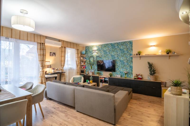 Megvételre kínálunk egy igényesen felújított KERT ÉS TERASZKAPCSOLATOS társasházi lakást a XIX. kerületben!Az ingatlanról:✔️tulajdoni lapon 94 m2-es,✔️közvetlen kijárat a nappaliból a 30 m2-es saját teraszraRészei: tágas amerikai konyhás nappali, 2 hálószoba. fürdőszoba, közlekedő, előszoba✔️Nyugati tájolású napfényes lakás✔️ablakai műanyagok✔️nappaliban Gree hűtő/fűtő klíma✔️fűtéséről gáz cirkó gondoskodik (rezsi költsége kedvező, fűtés maximum 15.000 Ft.)✔️belmagasság 268 cm✔️A lakáshoz tartozik egy felszíni autóbeálló és egy tároló is.A Házról:✔️2001-ben épült téglából.✔️24 lakásos társasház.✔️Jó lakóközösség jellemzi✔️A társasház elkerített, saját kerttel játszótérrel és közösségi terekkel ellátott.✔️Kertben öntözőrendszer✔️2025-ben újította a ház a tetőt!Ajánlom mindenkinek!Hitelre is megvásárolható!Ha felkeltette érdeklődésedet keress a hét bármelyik napján!