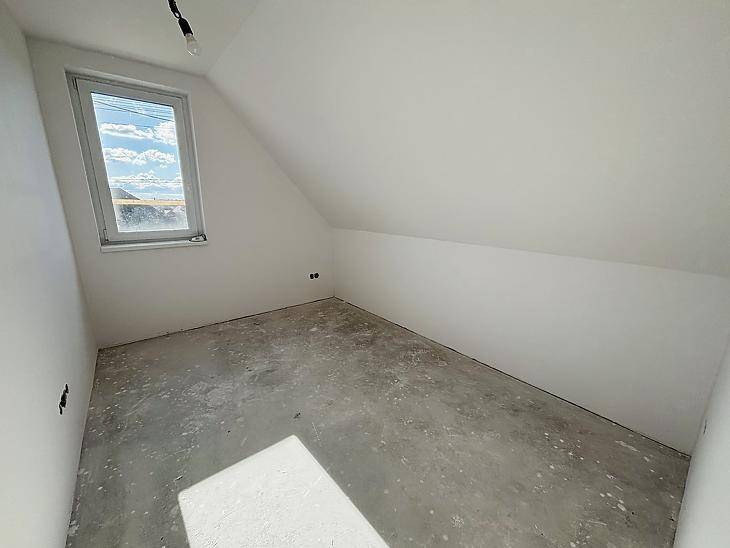RégiFót rendezett, családias részén kínálunk megvételre egy 2026-ban épült, modern ikerházfelet, amely ideális választás mindazok számára, akik új otthont keresnek jó infrastruktúrával és kiváló megközelíthetőséggel.A nettó 94,5 nm-es lakótér praktikus elrendezésű: a földszinten amerikai konyhás nappali, egy szoba, fürdőszoba és előszoba található, míg a teljesen beépített tetőtérben közlekedő, három külön nyíló szoba és egy fürdőszoba került kialakításra. A déli fekvésnek köszönhetően a terek egész nap világosak.A nappaliból közvetlen kapcsolat nyílik a 6,5 nm-es teraszra és a leválasztott, saját használatú 20 nm-es kertrészre.Az ingatlan korszerű műszaki tartalommal rendelkezik:12 cm külső szigetelés, 30 cm födémszigetelés, 3 fázis, H tarifa, hőszivattyús hűtő-fűtő klíma és mindkét szinten padlófűtés biztosítja az energiatakarékos működést.A társasházzá minősített ingatlan külön helyrajzi számon szerepel, saját mérőórákkal rendelkezik, 1/1 tulajdonban van, a ház előtt pedig két saját kocsibeálló található.Elhelyezkedése kifejezetten kedvező: buszmegálló, üzletek és a mindennapi élethez szükséges szolgáltatások a közelben, Budapest pedig gyorsan megközelíthető autóval.Az ingatlan kizárólag készpénzes vevő részére elérhető.