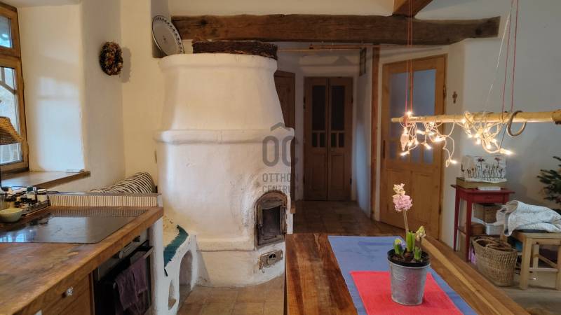 Vágyik egy helyre, ahol a reggeli kávé mellé templomtoronyra néző panoráma és erdőszéli csend jár? Orfű belterületén, egy hatalmas, közel 6000 m²-es dupla telken várja új gazdáját ez a különleges, autentikus parasztház.Hatalmas tér, végtelen lehetőség: A két helyrajzi számon fekvő, összesen 5956 m²-es terület valójában 2-3 építési portányi helyet kínál – ideális családi rezidenciának, vendégháznak vagy befektetésnek. Csodás panorámát nyújt Orfű községre, a templomtoronyra, illetve a környező hegyoldalakra. A telek egyik vége erdővel határos.A szép, tornácos ház helyi védettség alatt áll, nettó alapterülete 97 m2, amely áll előtérből, nagy konyha-étkező-nappali helyiségből (26 m2), nagyszobából, amely külön bejáratú is lehet, saját fürdő+wc-vel, kuckós kemencével, 2 félszobából, és egy kisebb szobából, valamint még egy fürdő+wc helyiségből. A fürdők két éve lettek átalakítva. A házhoz tartozik egy kívülről megközelíthető 15 m2-es pince, illetve egy melléképület, fészer, amelynek a megerősítése szükséges.A ház modernizálása 2008-ban történt, pl. a víz-, és villanyvezetékek cseréje, bekerültek a látszó fagerendák, kialakították a vízelvezetést a ház körül. Akkor készült el a két búbos kemence, amelyek közül a nappaliban lévő vízteres kialakítású, erről működik keringetős rendszerrel a radiátoros központi fűtés. A másik a nagyszobában van, az előtér felől fűthető, a szecessziós cserépkályhán keresztül. (Tipp: Ez a nagyszoba leválasztható a lakótér többi részétől, külön apartmanként funkcionálhat önálló utcai bejárattal.) A ház egyedi gyártású külső-belső nyílászárókat kapott, a hidegburkolat padlástégla, a fapadló pedig egyedi, asztalos által készített, de felújításra szorul. A födém-, és tetőszerkezet még eredeti állapotában van.Több, mint egy ingatlan: Életérzés.Ez a porta nem csak falakból áll – erős kisugárzása, békéje azonnal magával ragadja az embert. Itt az erdő a szomszéd, a kilátás pedig minden nap más arcát mutatja.Az ingatlan per- és tehermentes, azonnal birtokba vehető.Jöjjön el, érezzen rá a hangulatára, és legyen Ön is büszke orfűi lakos!Kérem, tekintse meg a tájékoztató jellegű alaprajzot!Tájékoztatásért hívjon nyugodtan!