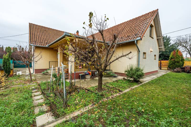 Az ingatlan egy 568 m²-es saroktelken, csendes, rendezett utcában helyezkedik el, kiváló minőségű, teljesen kiépített aszfaltos úthálózaton. A ház 1996-ban épült, jól átgondolt alaprajzzal, praktikus térkapcsolatokkal. A telek két utcafronti bejárattal rendelkezik, egyik oldalon a 23 m²-es garázzsal, ahonnan közvetlen átjárás nyílik a lakótérbe – ez különösen kényelmes a mindennapokban.A főbejáraton belépve egy tágas, világos nappali fogadja, mely a terasz irányába megnyitható, így kellemes átmenet teremthető a beltér és a kert között. A nappalihoz kapcsolódik a külön étkező, amelyből a konyha és a spájz is megközelíthető.Az ingatlanban három hálószoba, egy dolgozószoba, valamint két fürdőszoba WC-vel biztosítja a kényelmes mindennapokat. Külön kazánhelyiség, gardrób vagy dolgozószoba, előtér és egyéb kiszolgáló terek egészítik ki a lakóteret. A fűtést gázcirkó látja el padlófűtéssel és radiátorokkal, melyet egy hűtő-fűtő klíma segít a költséghatékony és komfortos hőmérséklet érdekében.A ház tetőtere beépíthető (~70 nm hasznos alapterülettel). Igény szerint akár külön lakrész, akár iroda vagy üzleti célú terület is kialakítható. A kert gondozott, körben füvesített és növényekkel beültetett, gyümölcsfákkal és örökzöldekkel, melyek természetes privát szférát biztosítanak. Lehetőséget ad gyermek játszóterének, medencének és grillezésnek egyarántHelyiséglista:- Szoba: 10,2 m²- Szoba: 13 m²- Szoba: 19,31 m²- Dolgozószoba: 10,51 m²- Nappali: 29,8 m²- Étkező: 16,6 m²- Konyha: 6,4 m² -Kamra: 2,25 m² -Fürdő+WC: 3,3 m² -Fürdő+WC: 5,7 m²- Egyéb helyiség: 3,6 m²- Előszoba: 5,6 m² -Garázs: 20,8 m² - Terasz: 15 m² Lokáció és életstílusA Tusculanum Érd egyik legkedveltebb, családias és rendezett városrésze, ahol minden fontos szolgáltatás karnyújtásnyira található:* bölcsőde, óvoda, iskola, buszmegálló* orvosi rendelő, kis közért Érd központja* szakorvosi rendelő, bankok, bevásárlóközpontok* vasútállomás * M0, M7 autópálya Miért érdemes Érdre költözni?Érd Budapest agglomerációjában dinamikusan fejlődő, mégis nyugodt, kertvárosias környezetet kínál, ahol a természet közelsége és a városi kényelem kéz a kézben jár. A városban kiváló intézmények, széleskörű szolgáltatások, modern bevásárlóközpontok, sport- és rekreációs lehetőségek találhatók, miközben megmarad a családias, rendezett hangulat. Budapest autóval és tömegközlekedéssel is gyorsan elérhető, így a fővárosi munkahelyek könnyen megközelíthetők, miközben a hazaérkezés már egy nyugodtabb, élhetőbb közegbe történik.Az ingatlan hitelre alkalmas, így akár finanszírozással is könnyedén megvásárolható. Igény esetén teljes körű ügyintézésben és hiteltanácsadásban is készséggel segítek, hogy a vásárlás folyamata gördülékeny legyen.Érd, családi ház, eladó ház, kertes ház,