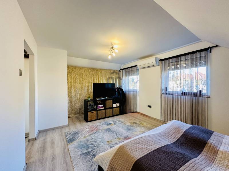 Eladó Mogyoród csendes, igényes környezetében egy kiváló elosztású, 3 szintes, 129 m²-es családi ház, amely 1208 m²-es telken helyezkedik el. Az ingatlan ideális választás lehet családok számára, akik nyugodt, zöld környezetben szeretnének élni, mégis Budapest közelében.A ház tágas, világos terekkel rendelkezik, a nappaliból pedig egy hangulatos, panorámás terasz nyílik, amely tökéletes helyszíne lehet pihenésnek vagy baráti, családi összejöveteleknek.Az ingatlan elosztásaA 3 szintes ház praktikus kialakítású:1. Alsó szint-45 m²-es garázs-tárolásra is alkalmas kiszolgáló terek2. Földszint-tágas nappali teraszkapcsolattal- 2 db külön nyíló szobák-fürdőszoba-előszoba-WC-tároló3. Emelet-2 db tágas szoba-fürdőszoba (gépészet kialakítva, burkolásra vár)-Közlekedő, melyből egy hangulatos fedett erkélyre jutunk. Összesen:nappali + 4 szoba2 fürdőszobaKomfort és műszaki tartalom:-Vegyes-tüzelésű kazán puffer tartállyal-radiátoros fűtés-padlófűtés a nappaliban, előtérben és az alsó szinti fürdőben-3 db Wifis klíma (2 az emeleten, 1 a földszinten)- minden nyílászárón alumínium redőny Telek és extrák:-1208 m²-es telek-elektromos autó töltő kiépítve-ásott kút-fedett autóbeálló-elektromos kovácsoltvas kapu-rendezett, kellemes környezet Lokáció:Mogyoród egyre népszerűbb település Budapest közvetlen közelében, amely kiváló választás azoknak, akik a város közelsége mellett nyugodt, zöld környezetben szeretnének élni. A közelben megtalálhatók iskolák, óvodák, boltok, valamint a közlekedés is kedvező.M3-as autópálya pár percnyire. Ha felkeltette érdeklődését keressen bizalommal a hét bármely napján.