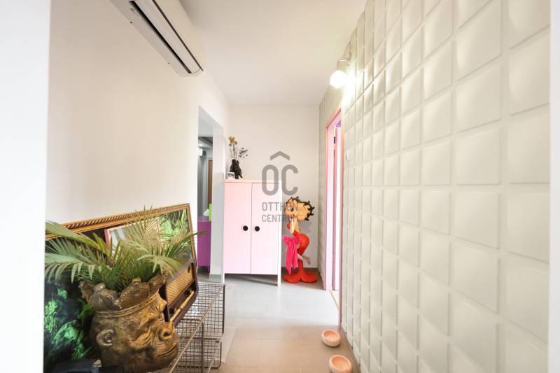 Eladó egy 69 m²-es, világos és praktikus elosztású panel lakás, amely ideális választás lehet fiatal pároknak, barátoknak vagy akár befektetésnek is. A lakás csendes, jól megközelíthető környéken, a Flórián tér közelében található, így minden fontos szolgáltatás, közlekedés és bevásárlási lehetőség perceken belül elérhető.A lakás két évvel ezelőtt teljes körű felújításon esett át, így modern és friss hangulat fogadja az új tulajdonost. A szobákban laminált parketta, műanyag nyílászárók és redőnyök biztosítják a kényelmet, valamint mindhárom szobában szabályozható radiátor került felszerelésre.A lakásban három külön nyíló szoba található, ami kifejezetten előnyös fiatal lakók számára – akár külön dolgozószoba, háló vagy vendégszoba is könnyedén kialakítható.A konyhabútor mindössze 1 éves, teljesen gépesített:- tűzhely- elektromos főzőlap- mosogatógépA nyári melegben a komfortot egy klímaberendezés biztosítja, amely az előtérben kapott helyet, és hatékonyan lehűti az egész lakást.A lakás tehermentes, így a vásárlás és a költözés is gyorsan lebonyolítható.További előnyök:- emeleti lakás, szép kilátással- liftes és akadálymentesített ház- a lakás előtt közös folyosórész, ahol extra tárolási lehetőség vanA gáz jelenleg be van kötve, de falba épített rendszer miatt nem használják, így csak az alapdíjat kell fizetni (kb. 6.000 Ft / 3 hónap).Ez a lakás kiváló választás lehet első otthonnak, de a három külön nyíló szoba miatt befektetésnek vagy kiadásra is ideális.Ha egy jó elosztású, felújított lakást keresel remek lokációban, ezt érdemes megnézned!Ez az ingatlan a \"Hűség csomag\" megbízási portfólióhoz tartozik. Részletek az Otthon Centrum weboldalán.