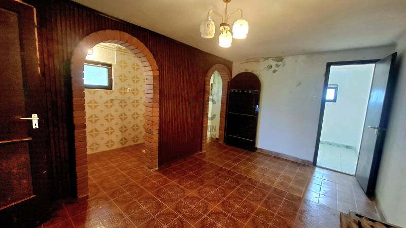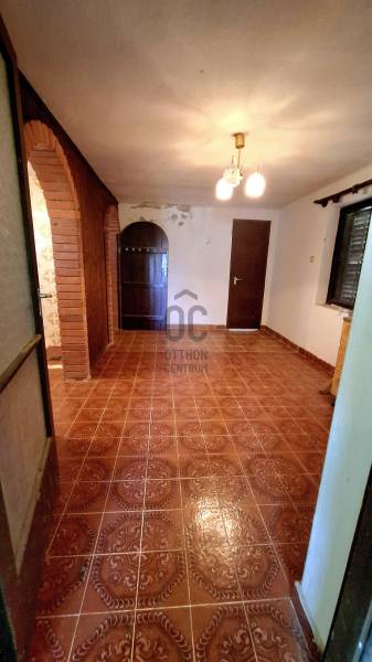 Regisztrációs szám: M0003039A Pellérdi buszfordulótól 300 méterre, eladó Aranyosgadány felé egy egy szintes, tornácos, tégla falazatú, 38 m2-es, 2 szobás, fürdőszobás, főzőfülkés kialakítású, elektromos árammal ellátott épület, mely alatt egy pince húzódik.A ház palával fedett és a tetőtere beépíthető.Az épület mögötti területen elhelyezésre került egy 1 m3-es IBC tartály, melynek köszönhetően megoldották az épület víz ellátását, ugyanis kiépítették a vízvezetéket,így lehet használni a mosdót a W.C.-t és a fürdőkádat is, de érdemes lenne kutat fúratni.(Jelenleg le van kötve, a vezeték, de csak újból rá kell csatlakozni!) 1 műanyag és 1 fa ablak biztosítja a fény bejutását a helyiségekbe, melyek árnyékolókkal szereltek.A telek sík, sok féle termő gyümölcsfa megtalálható rajta, ezért érdemes volna körbe keríteni. 2 helyen van kiépített kémény, az egyikre csatlakoztatva van egy fa tüzeléses kályha, mely ott is marad.Az épület statikailag, szerkezetileg stabil, masszív, de esztétikai felújításokat, javításokat végezni kell rajta!!!A látható leázások okai már meg lettek szüntetve, csak belül nem lett kijavítva!A T-home optikai kábele biztosítja az internetezés és a TV szolgáltatás lehetőségét.A hulladék elszállítása megoldott!A település ezen részén nagyon sokan élnek életvitel szerűen.Pécs közelségének és az ingatlan kedvező árának köszönhetően, biztos nagy lesz rá az érdeklődés, úgyhogy ne várjon sokáig, mert le fog maradni róla!A hét bármely napján állok szíves rendelkezésére!