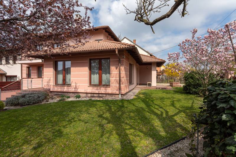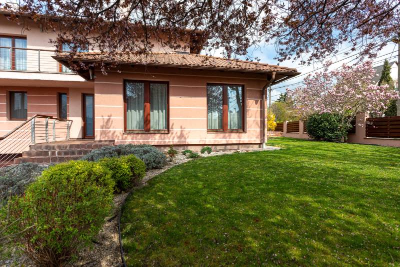Székesfehérvár egyik legkedveltebb kertvárosi részén, Öreghegyen, belülről szinte újszerű állapotban lévő, összesen 270 m2-es, nappali-konyha-étkező (60 m2.) + 4 szobás, 2 fürdőszobás, teljesen alápincézett, extra minőségű anyagok felhasználásával épült, tehermentes, déli tájolású luxus ingatlan 2 állásos (45 m2-es) garázzsal, gardróbbal, beépített bútorokkal, gépekkel, háztartási helyiséggel, vendég wc-vel, 56 m2-es, burkolatlan, egy légterű tárolóval a pinceszinten, 454 m2-es parkosított, összközműves telekrésszel azonnali költözéssel eladó.A 908 m2-es, összközműves telekre, dupla főfalakkal elválasztott ikerház 2007-ben, belsőépítész tervek által épült, a kor legmodernebb, legkorszerűbb technológiáinak, minőségi anyagainak a felhasználásával. 38 cm-es Porotherm tégla főfalak 10 cm Dryvit hőszigeteléssel. Mindegyik födém vasbeton. Bramac cserép héjalás. Hő- és hangszigetelt, fa homlokzati nyílászárók szúnyoghálókkal. Viessmann 24 KW-os, turbós gázkazán, 200 literes hmv tartállyal biztosítja a falfűtést és a radiátoros fűtést valamint a meleg víz ellátást. Beépített vízlágyító. 3x16 + 16 Amper. Nappaliból nyíló terasz a földszinten és két szobából is megközelíthető erkély az emeleten. Beépített, gépesített konyhabútor, beépített szekrények az előszobában, gardróbban, háló- és gyerekszobákban. Riasztó. Split klímák mindkét szinten. Kandallókémény. Extra minőségű burkolatok, anyagok, szaniterek, csaptelepek, üveg korlátok, beltéri és kültéri világító testek. Elektromos kapuk és hőszigetelt, szekcionált garázsajtó. Színterezett, alumínium ereszcsatorna rendszer. Parkosított, kertész által karbantartott kert automata öntözőrendszerrel, csepegtetővel. Épített utcafronti kerítés. Külön víz-, villany- és gázóra. Ügyvéd által ellenjegyzett használati megállapodás szabályozza a tulajdon viszonyokat.Csendes, rendezett kertvárosi környezett, aszfaltozott utcák. A belvárosba közlekedő 24-es autóbusz megállója pár perc sétára található. Közelben általános iskola, üzletek és sportolási lehetőségek (Túrózsáki úti szabadidőpark).Magyarország piacvezető hitelközvetítője által egyedi kamatkedvezményekkel és bankfüggetlen, díjmentes hitelügyintézéssel is segítjük vásárlását. Hitel igénybe vehető az ingatlanra. Amennyiben minimum 25 millió Ft. összegű ingatlanfedezetes hitelt vesz igénybe általunk 500 Euro értékű Club Karos Spa**** wellness utalványt adunk ajándékba. (Az akció kizárólag a Money Network ügynökhálózatán keresztül beadott és folyósított jelzáloghitelekre érvényes.)Az ingatlant csak irodánk kínálatában találja. Amennyiben felkeltettem érdeklődését, hívjon bizalommal!