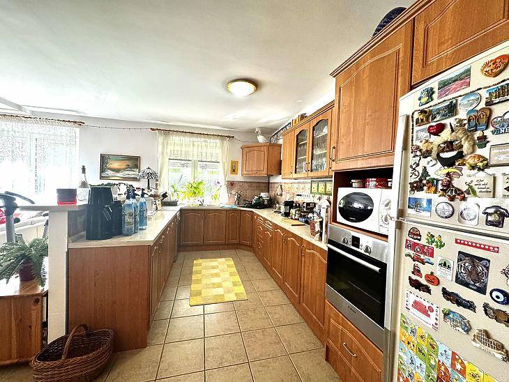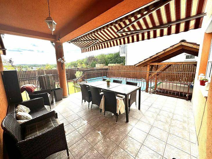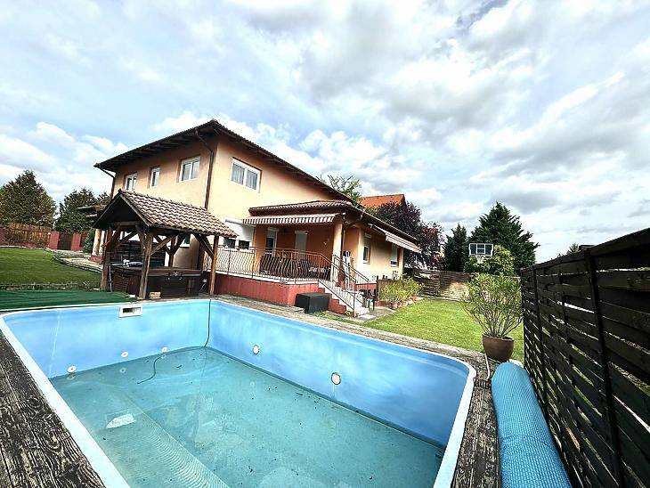 Dunakeszi egyik legkedveltebb lakóparkjában, csendes, nyugodt utcában kínálunk megvételre egy körbejárható, önálló családi házat, amely minden szempontból ideális választás lehet nagyobb családok számára is.Az ingatlan 2006-ban épült, kiváló alaprajzi kialakítással. A nettó 260 nm-es lakótérben tágas, világos helyiségek kaptak helyet. A földszinten található, egy amerikai konyhás nappali mely összesen 40 nm, amely a ház központi élettere.A szobák és fürdőszobák kényelmes méretűek, jól bútorozhatók.Főbb jellemzők:• 2 nappali • 5 hálószoba • 3 fürdőszoba és WC • 2 külön tárolóhelyiség a házon belül • 36 nm-es garázs • 30 nm-es pince, ideális hobbi- vagy fitness térnek • 20 nm-es, dél - keleti tájolású terasz, kellemes kilátással A gondosan karbantartott kert valódi kikapcsolódást kínál: fűthető úszómedence, 4 személyes jakuzzi, kerti sütögető és automata öntözőrendszer áll rendelkezésre, melyek a vételár részét képezik.Műszaki tartalom:• 38 cm-es Porotherm falazat, egy külső dryvit szigeteléssel • 25 cm-es födémszigetelés • Mediterrán beton cserépfedés • Fűtésrendszer: turbós puffertartállyal ellátott kombi cirkó, radiátoros és részben padlófűtéses hőleadással • Több nagy teljesítményű hűtő-fűtő klíma mindkét szinten A teljes alapterület – beleértve a garázst, pincét és teraszt – 345 nm.Fenntartása meglepően kedvező, jelenlegi használat mellett egy átlagos, körülbelül 70 nm-es lakás költségszintjén tartható.Ez az ingatlan kiváló választás azok számára, akik tágas, jól átgondolt otthont keresnek nyugodt, mégis jól elérhető környezetben.Bármilyen kérdése illetve megtekintési szándéka lenne kérem keressen bizalommal. Amennyiben hitel konstrukcióra lenne szüksége, bankfüggetlen hitel tanácsadóink ingyenesen nyújtanak segítséget az ügyintézésben, és segítenek megtalálni az Önnek legmegfelelőbb konstrukciót a vásárláshoz.
