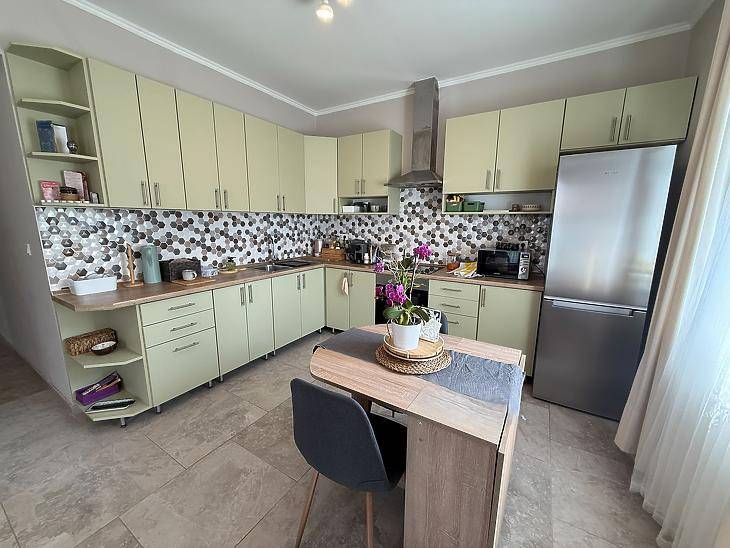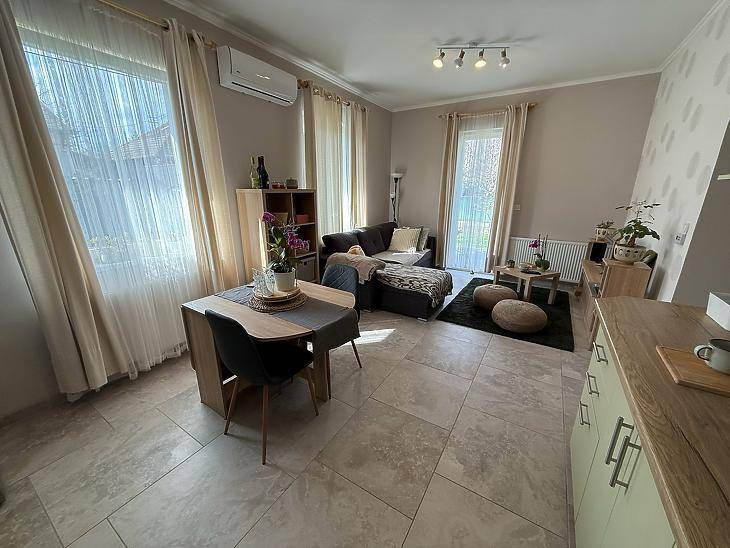 XVII. KERÜLETBEN: RÁKOSCSABÁN, CSENDES UTCÁBAN ELADÓ EGY 62 NÉGYZETMÉTERES, ÚJSZERŰ ÁLLAPOTÚ IKERHÁZFÉL, 380 NÉGYZETMÉTERES TELEKKEL ÉS KOCSIBEÁLLÓVAL.A ház 2021-ben épült Porotherm téglából, beton alappal és fa födémmel. A ház 10 cm dryvit szigeteléssel rendelkezik, a tető pedig 10 cm kőzetgyapottal szigetelt. A nyílászárók műanyagok.A fűtést és a meleg vizet kombi cirkó biztosítja, a nappaliban hűtő-fűtő klíma található.A szobák parkettásak, a többi helyiség járólappal burkolt.KIALAKÍTÁS: Amerikai konyhás nappali + étkező 8 négyzetméteres teraszkapcsolattal, 3 szoba, kádas fürdőszoba, wc, közlekedő, előszoba.A KÖRNYÉK: Rákoscsaba csendes mellékutcájában, jó közlekedésnél. A közelben, iskola, óvoda, játszótér, orvosi rendelő, gyógyszertár, számos bevásárlási lehetőség.Az M0-ás autópálya pár perc alatt közelíthető meg. A közelben, pár perc sétával a 169 E és a 269, járatok megállója és a 956 éjszakai busz megállója található. IRÁNYÁR: 119 M Ft.VEVŐINK RÉSZÉRE A KÖZVETÍTÉS DÍJTALAN!A hirdetésben szereplő adatok tájékoztató jellegűek.