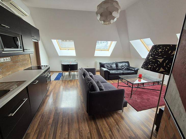 Eladó Budapest belvárosában, a Király utcában, egy igazi kuriózum! Az ingatlan 48 m2-es hasznos alapterülettel rendelkezik, míg a valóságos mérete összesen 64 m2. Az újépítésű lakás szintráépítéssel jött létre egy liftes társasház IV. emeletén.A lakásban két külön nyíló hálószoba van, és egy tágas amerikai konyhás nappali. Minden helyiség utcai nézetű és kifejezetten világos.A kiváló elhelyezkedésnek köszönhetően a Klauzál tér és a környék legjobb szolgáltatásai mind csak pár percnyi sétára találhatók.Ez az ingatlan ideális választás lehet mindazok számára, akik szeretnék élvezni a belváros nyújtotta kényelmet és pezsgést, miközben egy csendes és világos otthonra vágynak. Tökéletes lehetőség akár saját lakásnak, akár befektetésnek!Az adatok tájékoztató jellegűek!