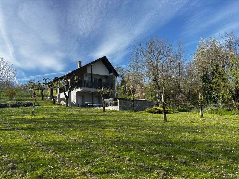 A Zalai-dombság a Dunántúl gyönyörű szeglete, 2-300 méteres magasságával, hullámzó, mégis szelíd lankáival igazi mesebeli világ tárul itt a kiránduló szeme elé. A térségben hangulatos, idilli kis falvak bújnak meg, a nyugalom szinte tapintható a csodálatos tájon.Ezek egyike Zalaszentlászló, a település külterületi részén, hangulatos mézeskalács házikó várja új tulajdonosát.Az 1960- as évek végén , kő és tégla falazattal épült 45 nm-es nyaraló mesés környezetben található.2024- ben teljes körű felújításon , bővítésen esett át , elnyerve jelenlegi formáját.Az emeleten egy légtérben, hálószoba , konyha-étkező, a földszinten , fürdőszoba, finn szauna, tároló kapott helyet.A szobából közvetlen erkélykapcsolat , mesés panorámával a völgyre és a környező hegyhátra, erdőre.Villany bevezetve, 3x 25 Amper áramerősség, vízellátás a kizárólagos használatú , saját, ásott kútból megoldott.Az otthon melegét inverteres hűtő-fűtő klíma berendezés garantálja, alternatív megoldásként, elektromos fűtő panel és fatüzelésű kályha áll a lakók rendelkezésére.A térkövezett, 30 nm-es teraszon kerti bútor és 4 személyes jakuzzi várja a kikapcsolódni , pihenni vágyó vendéget.A gondozott, gyümölcsfákkal , növényekkel betelepített kert 2826 nm.Az autók parkolása, telken belül megoldott, a ház aszfaltos úton, minden évszakban jól megközelíthető.A lakók biztonságát, kamera rendszer felügyeli.Miért különleges?Olyan hely, ahol a naplementéknek karaktere van, a reggeleknek kedvük, a hétköznapoknak pedig valahogy több türelmük.A hely varázsa élőben teljesedik ki igazán.A ház kifogástalan állapotban, teljes berendezéssel együtt kerül értékesítésre.Ha felkeltette az érdeklődését, hívjon bizalommal!